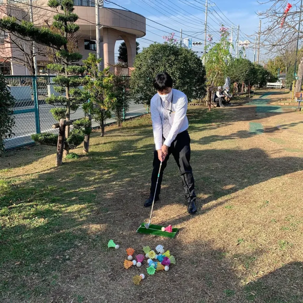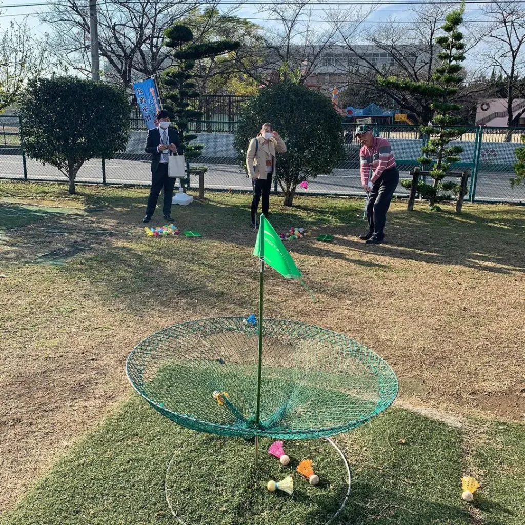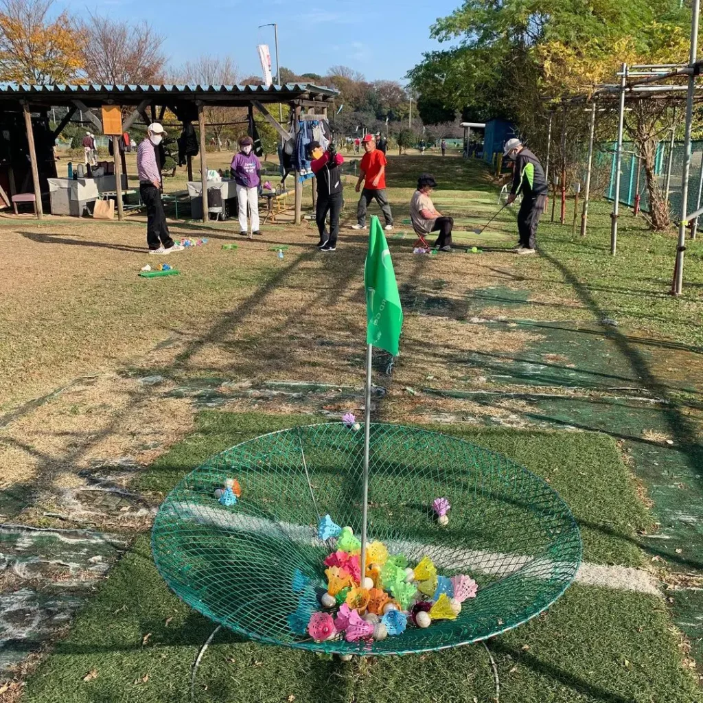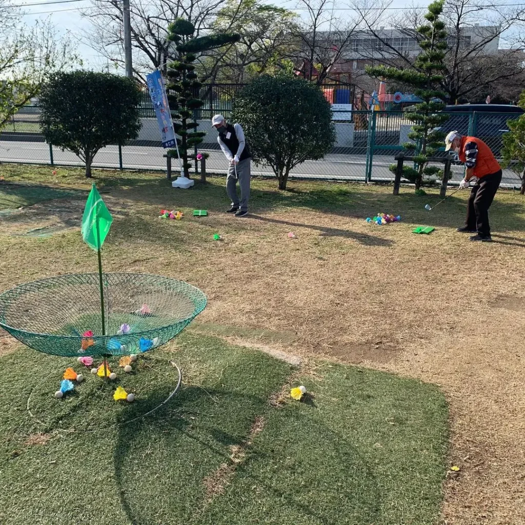 北スポーツセンター(埼玉県川口市)のターゲットバードゴルフ場で、『介護予防ギフトボックス』の体験講習会が開催時の様子です。